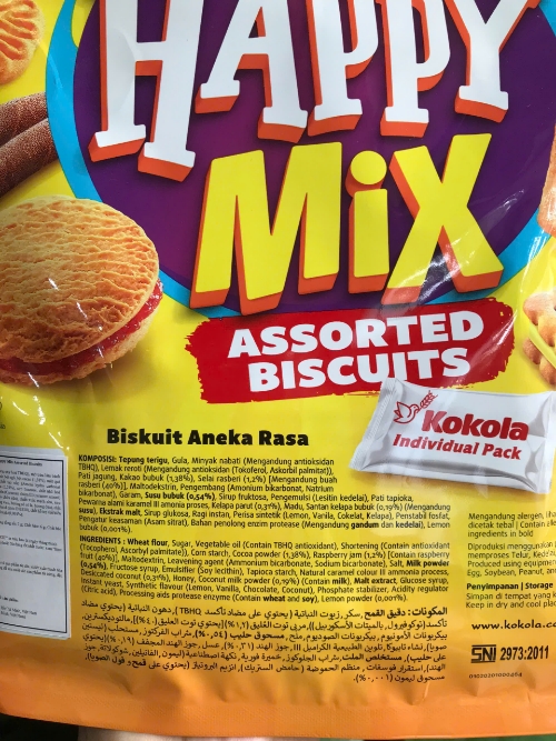 Thành phần: Bột lúa mì, đường, dầu thực vật (có chứa chất chống oxy hoá TBHQ), mỡ trừu làm bánh (có chứa chất chống oxy hoá (Tocopherol, Ascorbyl palmitat)), tỉnh bột ngô, bột cacao (1,38%), mứt quả Mâm xôi (1,2%) [chứa 40% quả Mâm xôi), maltodextrin, chất tạo xốp (Amoni hydro carbonat INS503(ii), Natri hydro carbonat INS500(ii)), muối ăn, bột sữa (0,54%), siro fructose, chất nhũ hoà (Lecithin từ đậu nành INS322(1)), tỉnh bột sắn, chất tạo màu tự nhiên (Caramen nhóm III (caramen amoni) INS150c), cơm dừa (0,31%), mật ong, bột sữa dừa (0,19%) (có chứa sữa), chiết xuất mạch nha, siro glucose, men nó instant, hương liệu tổng hợp (hương chanh, hương vani, hương sô cô la, hương dừa), chất ổn định (Dinatri diphosphat INS450(1)), chất điều chỉnh độ acid (Acid citric INS330), chất hỗ trợ chế biển (enzym thực phẩm Protease) (có chứa lúa mì và đậu nành), bột chanh (0,001%).