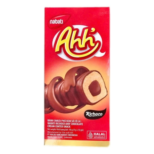 Bánh snack phủ kem socola Nabati Ahh Richoco là dòng bánh ăn nhẹ hấp dẫn với lớp vỏ giòn tan bên ngoài, kết hợp phần nhân kem mềm mịn bên trong và lớp phủ socola đậm đà bên ngoài. Sự hòa quyện giữa độ giòn, béo và vị ngọt vừa phải tạo nên trải nghiệm ăn vặt thú vị, phù hợp với nhiều đối tượng.