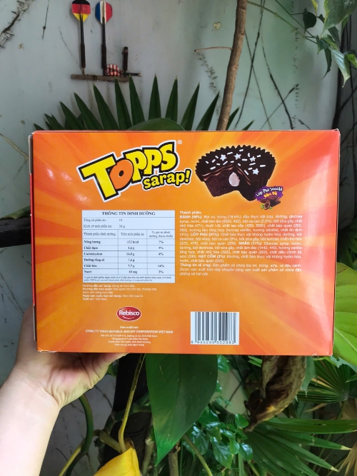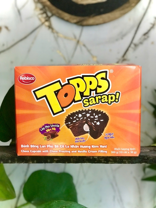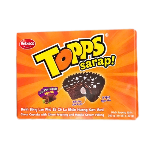Bánh Bông Lan Topps Sarap! Phủ Socola Nhân Kem Vani (Gói 12 cái) là sự kết hợp hoàn hảo giữa lớp bánh bông lan mềm xốp, bên ngoài được phủ một lớp socola ngọt ngào, thơm béo. Bên trong là phần nhân kem vani mịn màng, tan chảy nơi đầu lưỡi, mang đến hương vị vừa ngọt ngào vừa thanh nhẹ. Mỗi gói gồm 12 chiếc bánh nhỏ tiện lợi, thích hợp để thưởng thức hằng ngày, chia sẻ cùng bạn bè, hay dùng làm món ăn vặt cho những giờ nghỉ ngơi. Đây chắc chắn sẽ là lựa chọn tuyệt vời cho những tín đồ yêu thích sự hòa quyện giữa socola và vani.