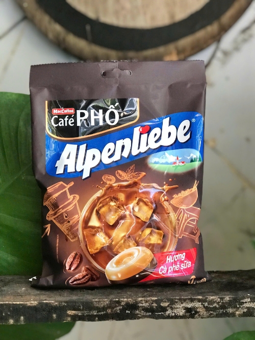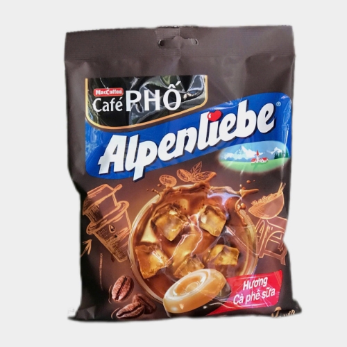 Kẹo Alpenliebe Café Phố là sự kết hợp tinh tế giữa vị cà phê rang xay đặc trưng và vị sữa ngọt béo, tạo nên hương vị hài hòa, dễ chịu. Lấy cảm hứng từ ly cà phê sữa đá quen thuộc của người Việt, từng viên kẹo mang đến cảm giác thơm nồng, ngọt dịu và hơi đắng nhẹ nơi hậu vị.