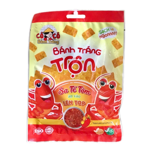 Sản phẩm được đóng gói tiện lợi, sạch sẽ, dễ mang theo khi đi học, đi chơi hoặc du lịch. Chỉ cần mở gói là có thể thưởng thức ngay, không cần chế biến thêm. Đây là lựa chọn lý tưởng cho những ai yêu thích món bánh tráng trộn nhưng vẫn muốn đảm bảo sự tiện lợi và vệ sinh.